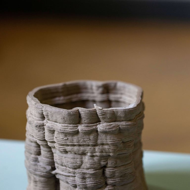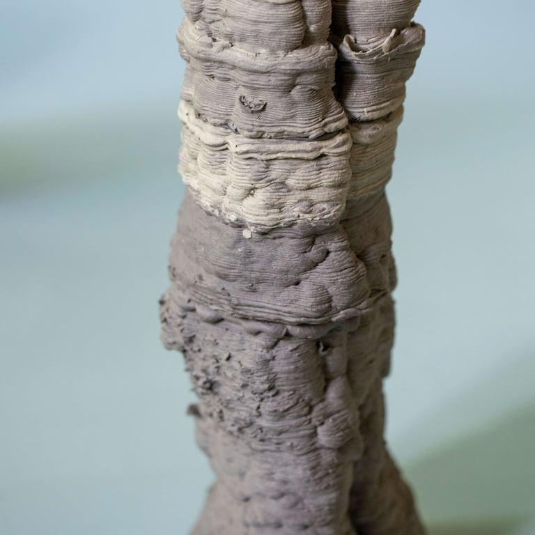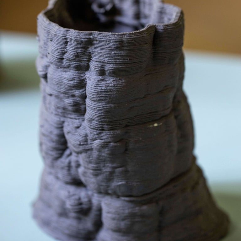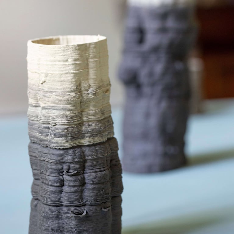 Technique: extruded 3D-printed clay, colorful stoneware, pigments, glazes.